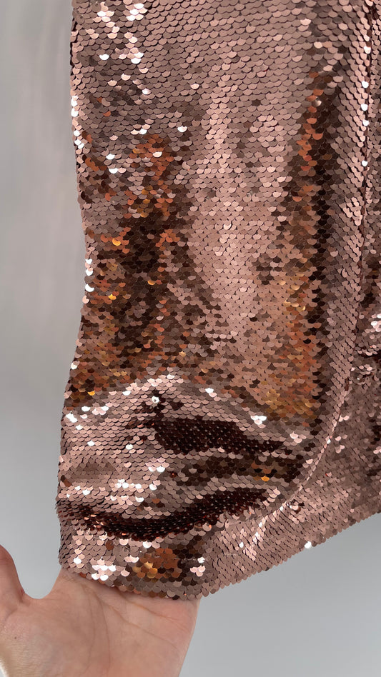 Free People X BB Dakota A Pretty Penny Rose Gold/Copper Sequin Dress (Medium)