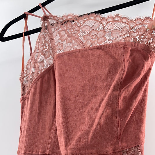 Free People Intimately Womens Lace Trim Short Bodycon Salmon Dress(Size XS)