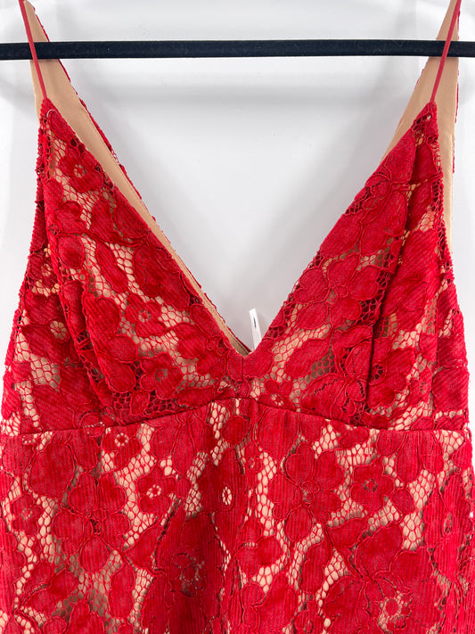 Free People Red Corduroy Lace Over Nude Underlay Sleeveless Mini Dress (Size 6)