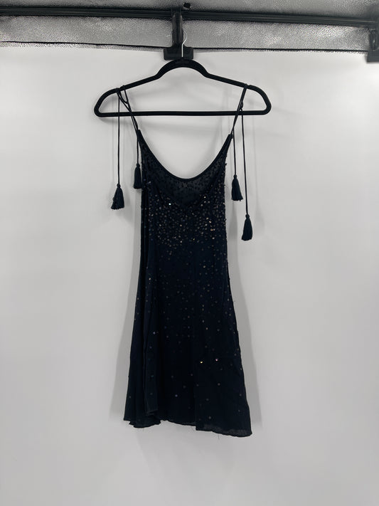 Free People Intimately Black Sequin Watch Me Slip Mini Dress (Size XS)