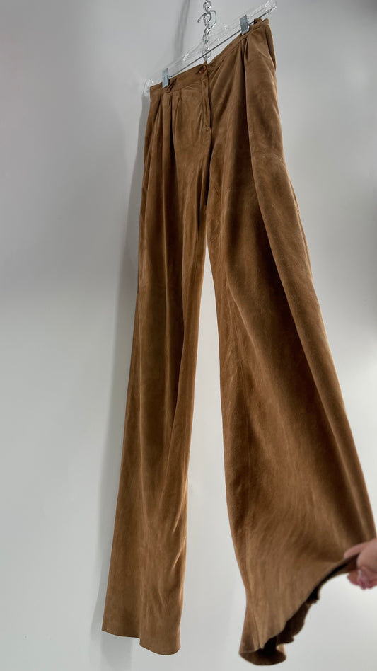 Vintage Lina Lee Tan Suede, Thin Lamb Leather Straight Leg Trouser (42)