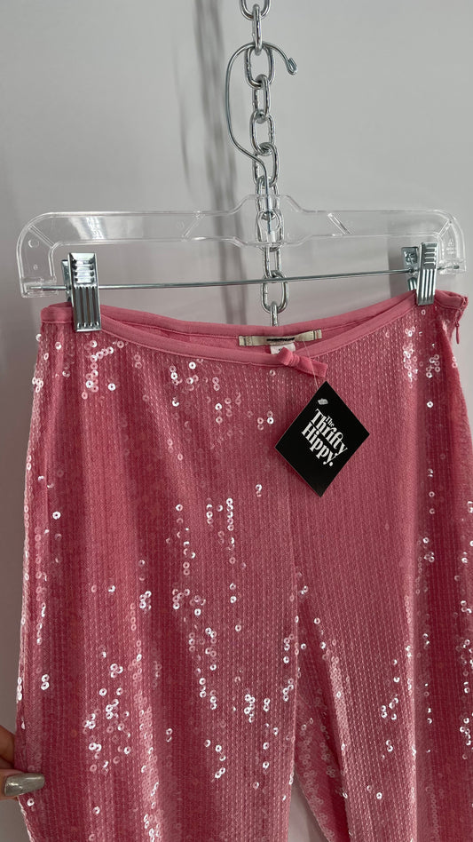 Kimchi Blue Pink Sequin Cropped Pant Low Waist with Bow (4)