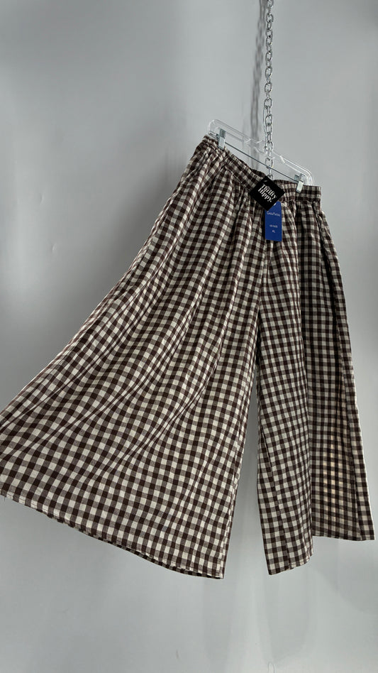 Wide Leg Brown Gingham Picnic Pants (XL)