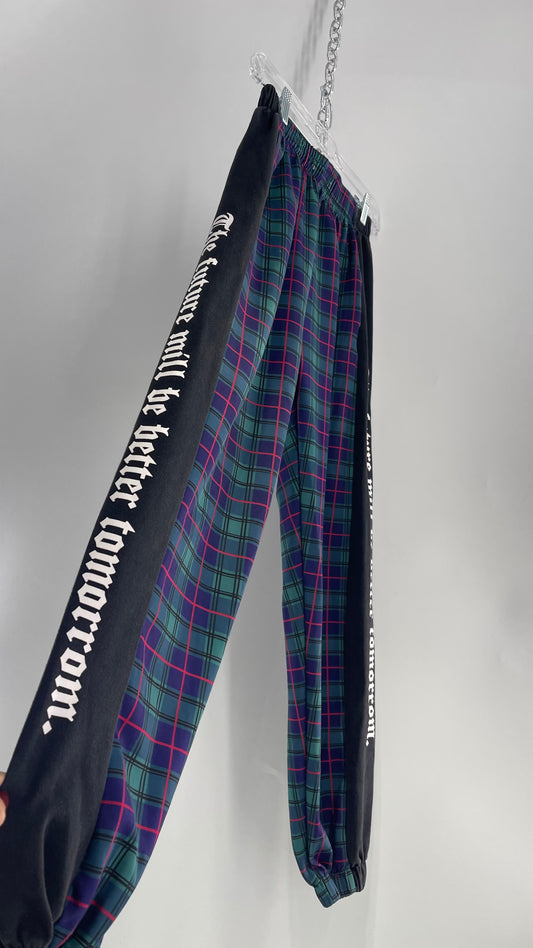 DFF White Men’s Plaid “The Future Will Be Better Tomorrow” Sweats (Small)