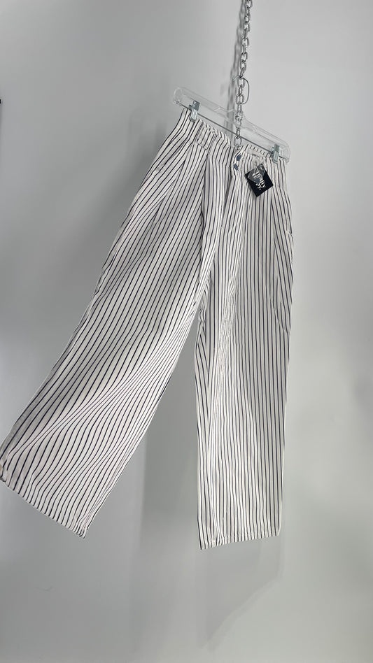 Urban Outfitters White High Waisted Navy Striped Trouser