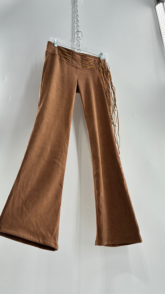 Vintage Rare L.E.I Low Rise Faux Suede Kick Flares with Wide, Thread Through Tassels Hip Band (5)