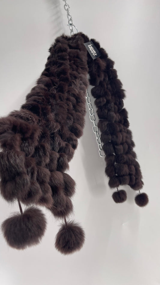 Vintage Dark Brown Rabbit Fur Pompom Scarf