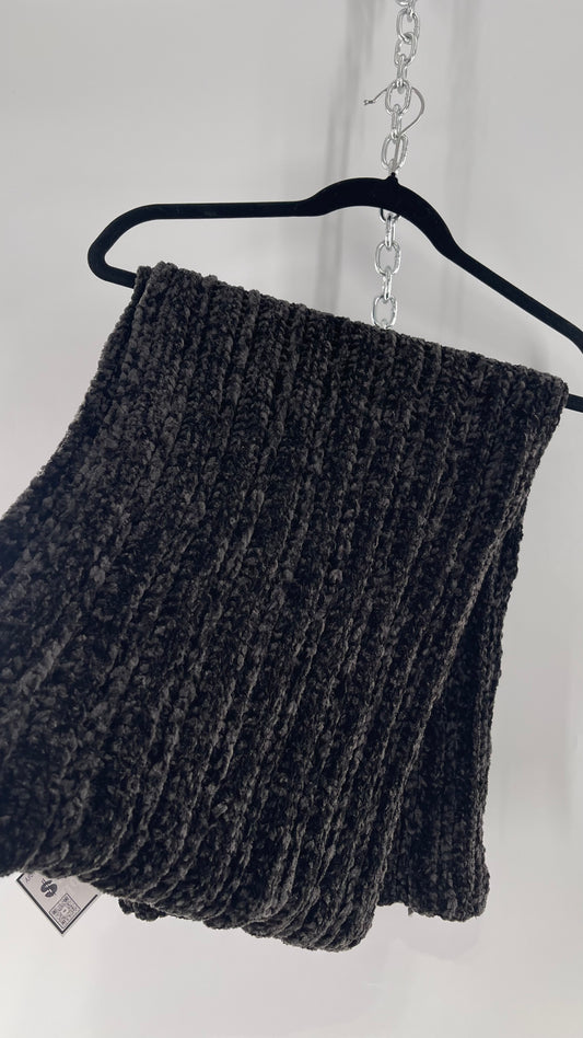 Anthropologie Maurices Black Chenille Velour Knit Scarf