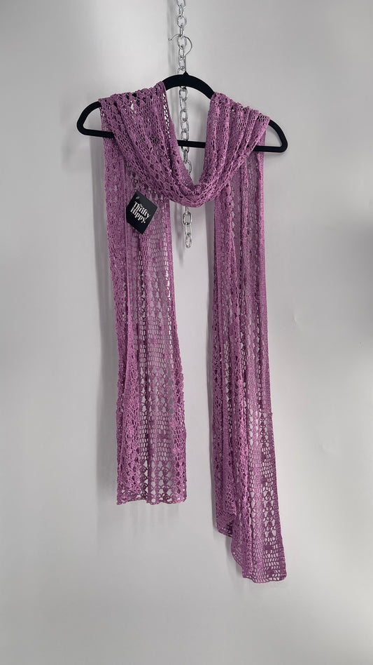 Vintage Purple Crochet Skinny Scarf Extra Long