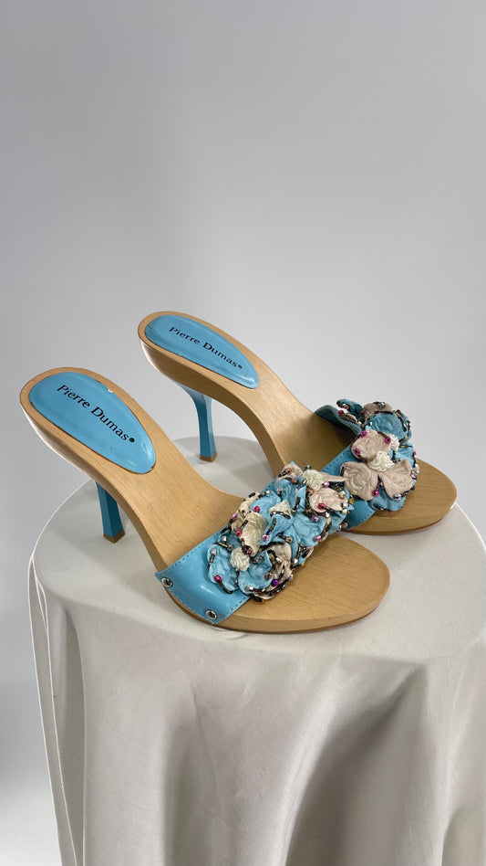 Pierre Dumas Baby Blue Wooden Heel with Beaded Floral Appliqués (9)