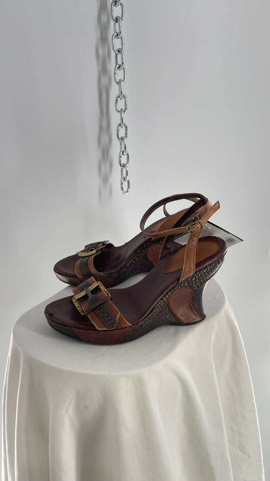 Vintage Hilary Radley Leather Patchwork Buckled Wedges (5)