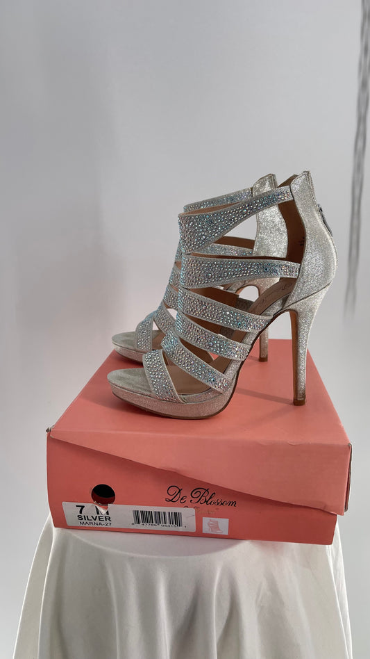 De Blossom Silver Glitter Platform Heels with Rhinestones (7)