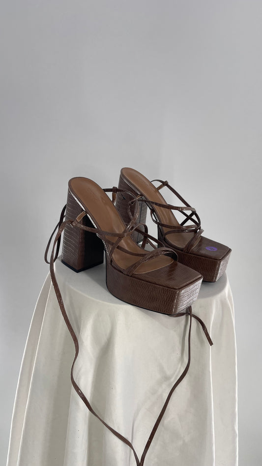Forever 21 Brown Embossed Platform Strappy Heel with Tags Attached (8)