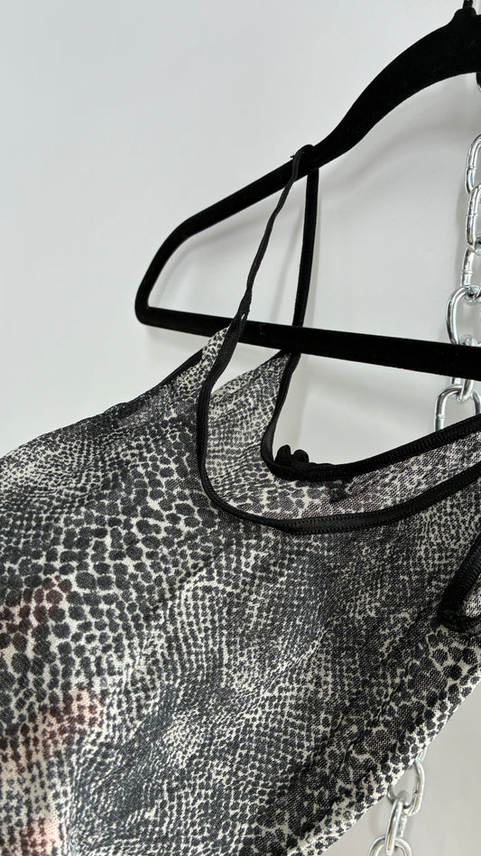 Vintage 1990s Sheer Snakeskin Patterned High Cut Bodysuit (S)