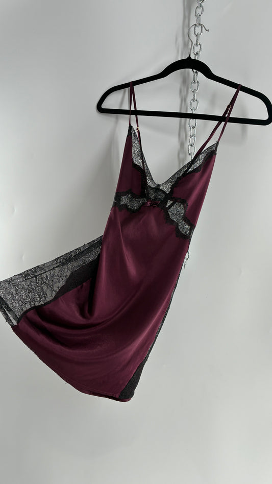 Vintage Victoria’s Secret Satin Plum Camisole with Black Lace Detailing (Medium)