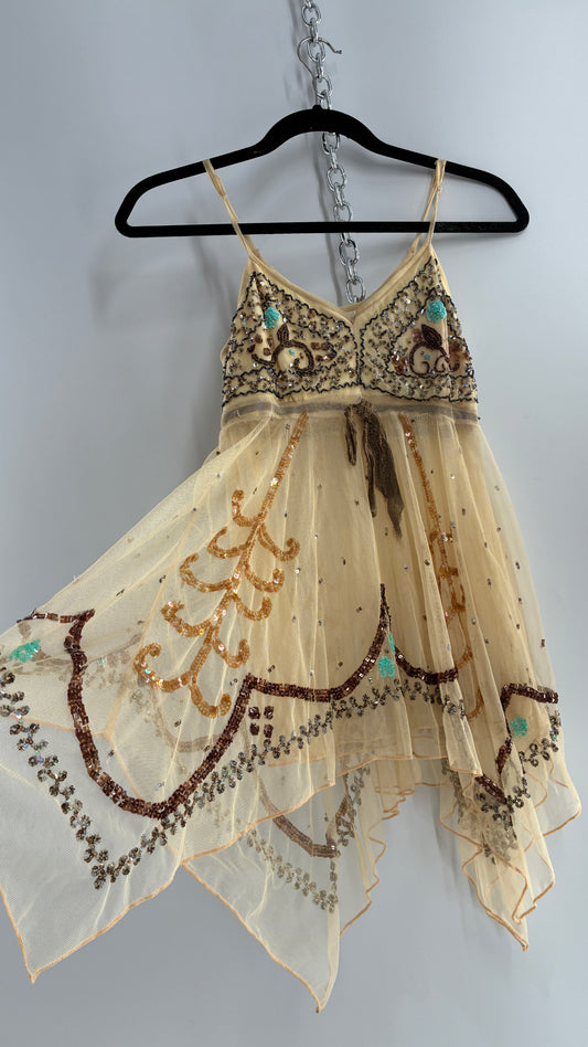 Handmade Beige Handkerchief Camisole with Hand Beaded Details (XS)