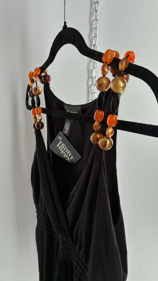 Vintage 1990s Black Camisole with Beaded Straps (Medium)
