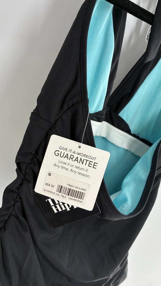 ATHLETA Black Ruched Halter Tank with Built in Lined Bra and Tags Attached (Small)