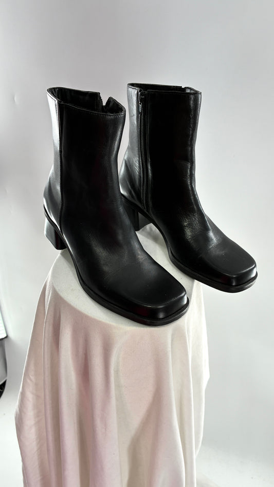 Vintage Naturalizer Black Square Toe Genuine Leather Block Heel Boots Made in Brazil (8)