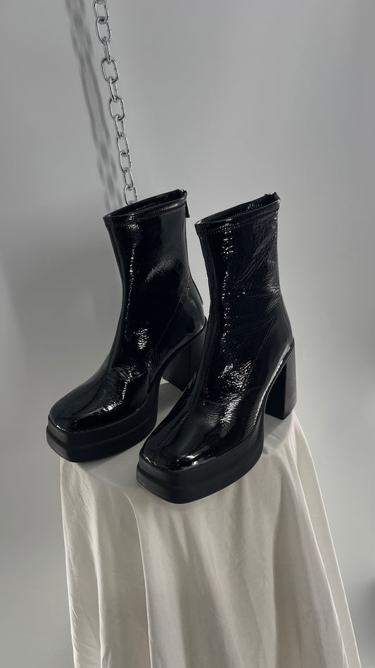 Free People Double Stack Platform Black Patent Leather Boot (38)