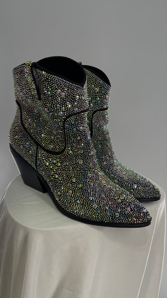 Black Iridescent All Over Rhinestone Cowboy Boots
