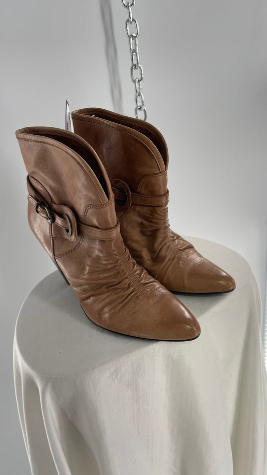 Vintage Pointed Toe Booties with Ruching and Belt Detail Made in Brazil