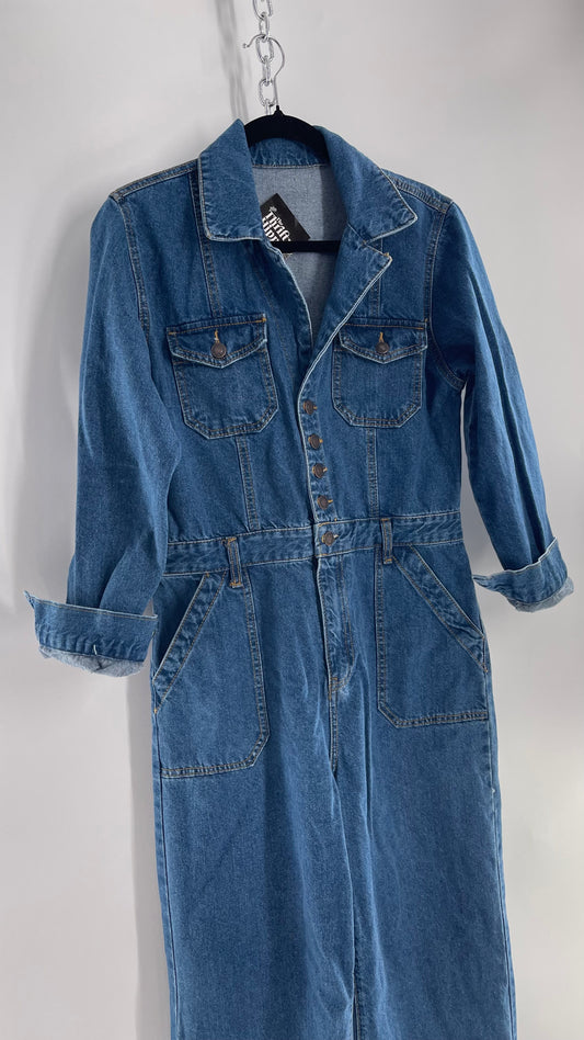 Vintage Medium Wash Jean/Denim Jumpsuit Boiler Suit (Small)