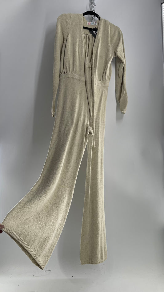 Free People Beige Crochet Thick Knit Beige Jumpsuit Romper (XS)