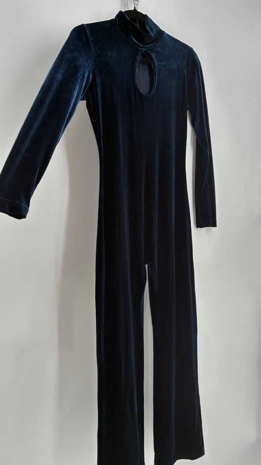 Vintage 1990s MODA INTERNATIONAL Midnight/Navy Blue Jumpsuit with Cut Out Keyhole Detail (Small)