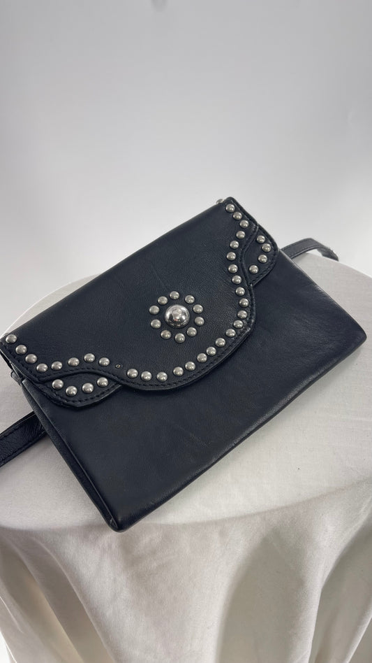 Free People Black Leather Waist Belt Purse with Silver Studs