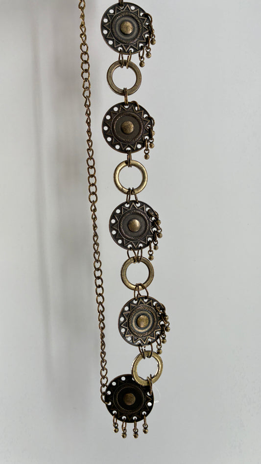 Free People Leather Link Belt with Western Buckle and Silver Studs (S/M)