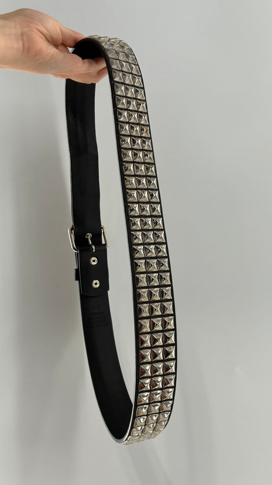 Vintage French Metallic Silver Leather Belt with Mixed Metal Studs (M)