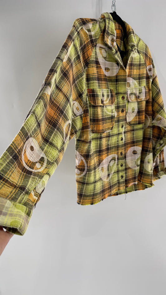 BDG Urban Outfitters Thick Lime Green/Orange Yin and Yang Flannel (XS)