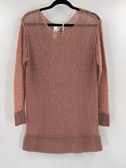 Free People Sheer Knit Off Dusty Pink Sweater (Size XS)
