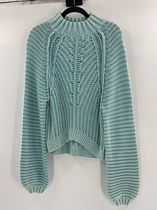 Free People Sweetheart Sweater Chunky Rib Knit Mock Neck Pullover Light Blue (Size Small)