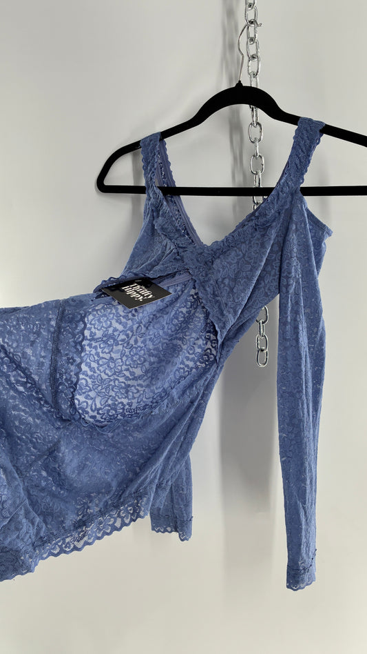 AERIE Periwinkle Blue Long Sleeve Cold Shoulder Open Back Lace Bodysuit (Large)Precio habitual $24.00Precio habitualPrecio unitario por$44.00Precio de oferta $24.00Oferta