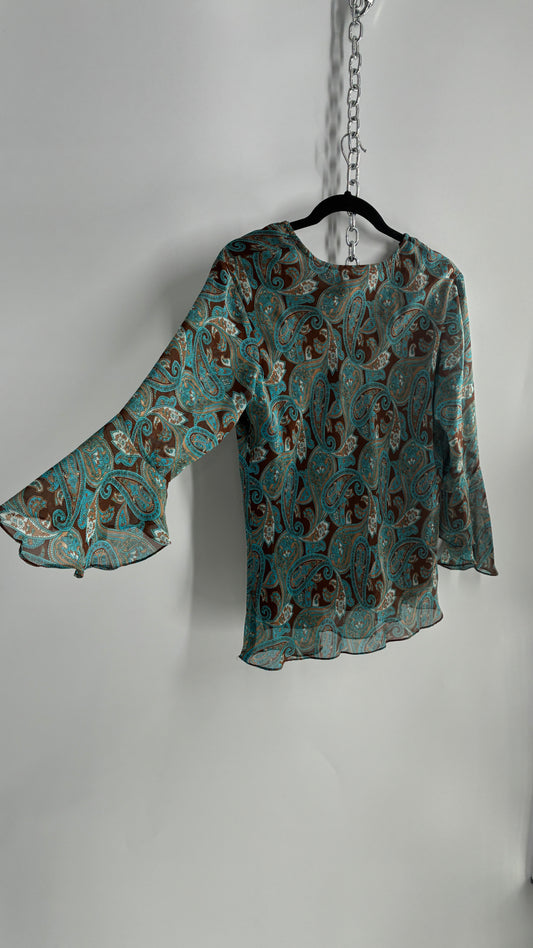Vintage ANNE CARSON 100% Silk Brown and Turquoise Quarter Bell Sleeve Blouse (Small)Precio habitual $22.00Precio habitualPrecio unitario por$36.00Precio de oferta $22.00Oferta