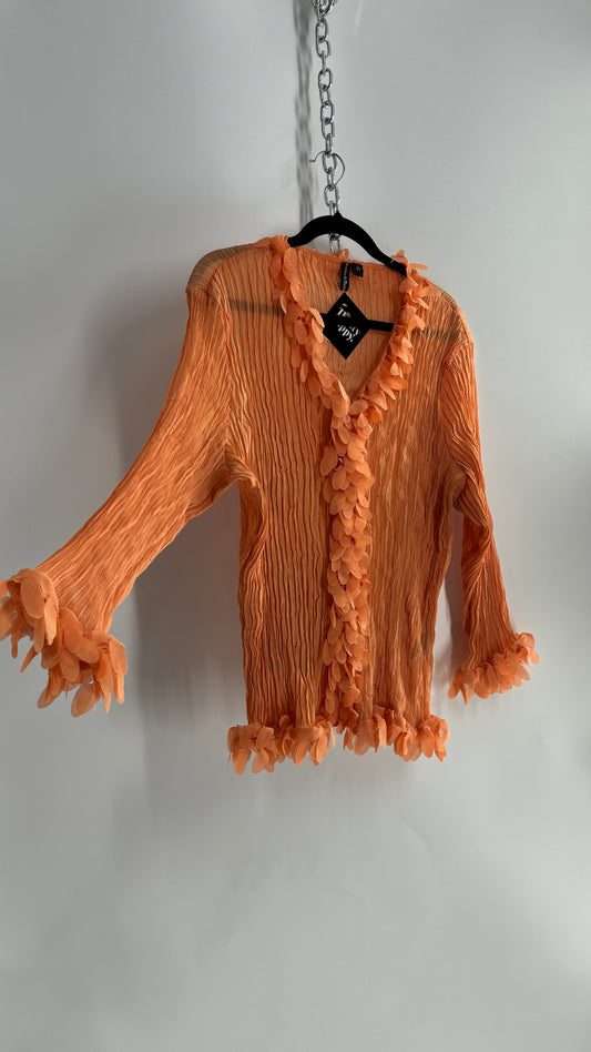 Vintage Essentials by Milano 1990s Orange Crimped Petal Trim Blouse (XL)Precio habitual $34.00Precio habitualPrecio unitario por$50.00Precio de oferta $34.00Oferta