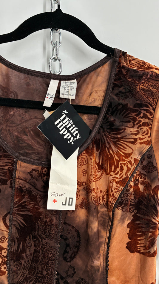 1990s Vintage SAMI + JO Velvet Burnout Brown and Orange Top (XL)Precio habitual $34.00Precio habitualPrecio unitario por$50.00Precio de oferta $34.00Oferta