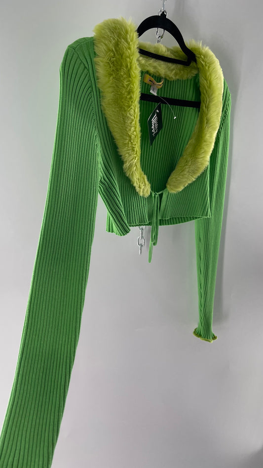 Urban Outfitters Lime Green Ribbed Ribbed Faux Fur Collar Shrug (Large)