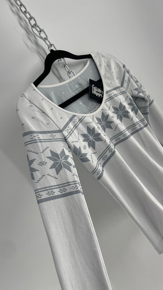 Free People Stretchy Snowflake Skin Tight Long Sleeve (Medium)