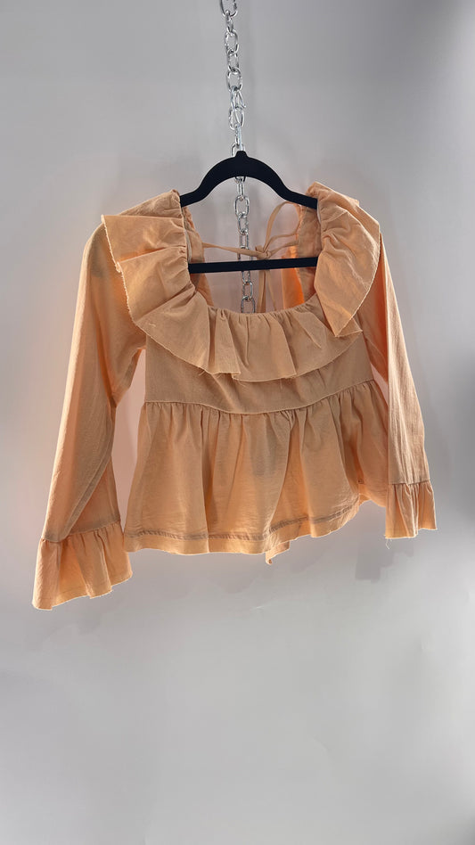 Free People Pumpkin Light Orange Backless Bow Back Cropped Blouse with Ruffle Sleeve and Neckline (XS)