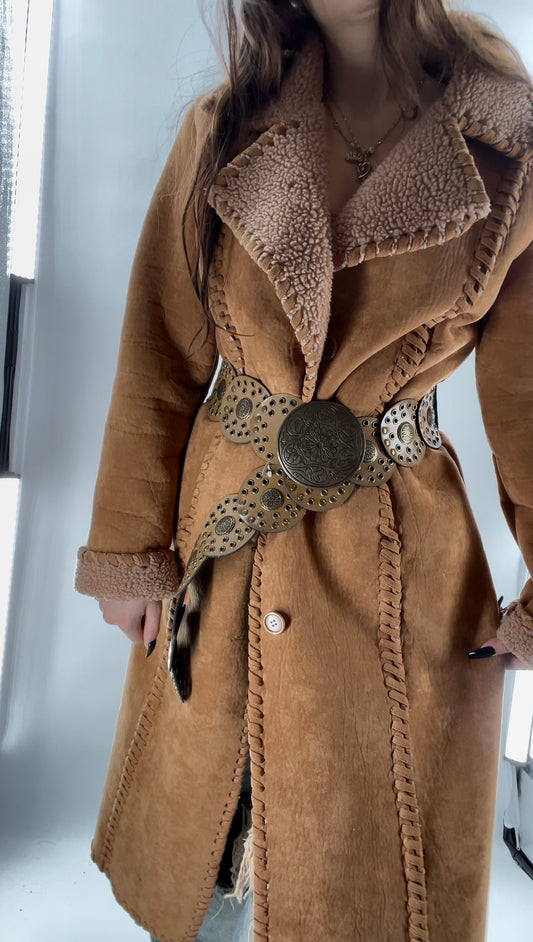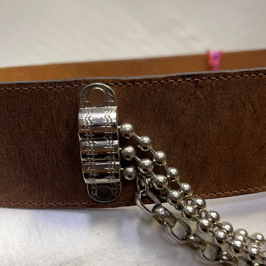 Light Brown Circle Belt with Exaggerated Buckle and Metal Details (XL)