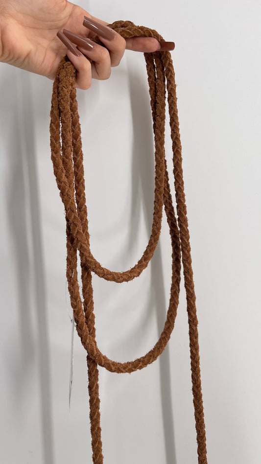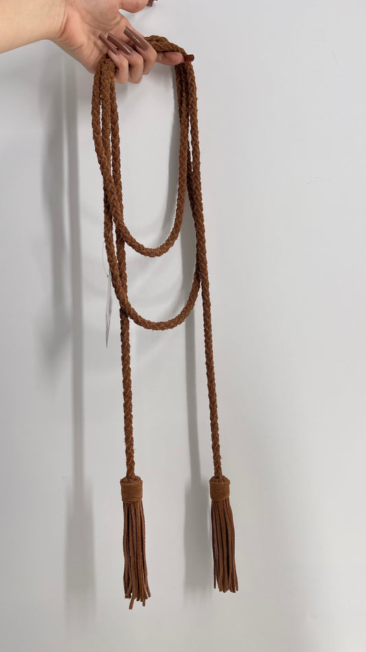 Free People Genuine Suede Leather Whip Tassel Lasso Belt (One Size)