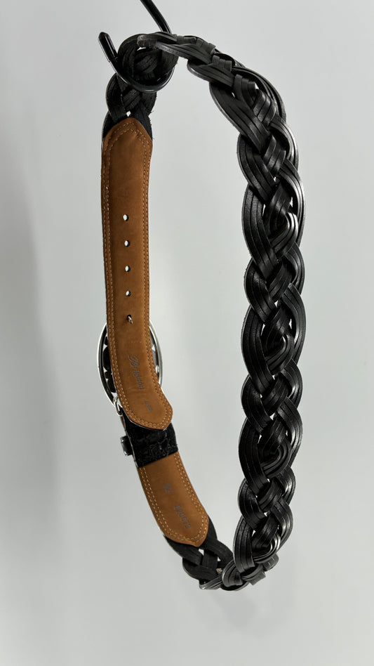 Brighton Black Leather Braided Belt with Oversized Silver Buckle (32)