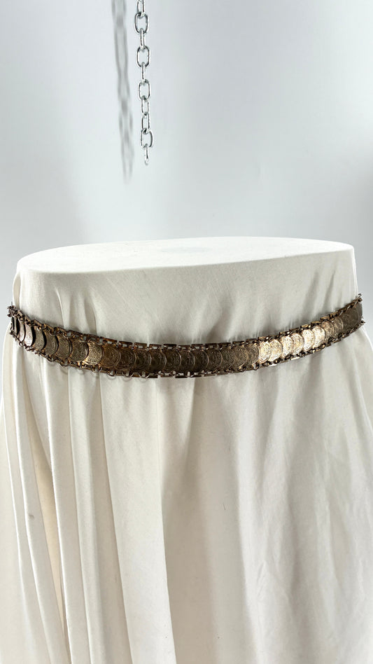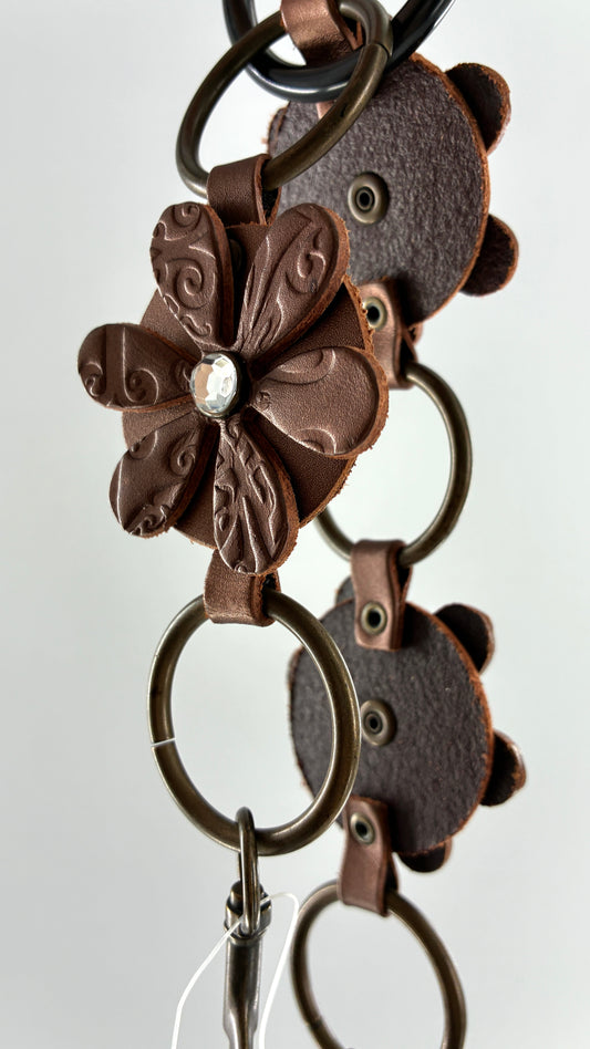Vintage RELIC Brown Bronze Leather Flower Chain Belt with Rhinestones (M/L)