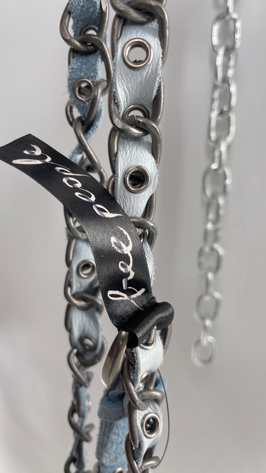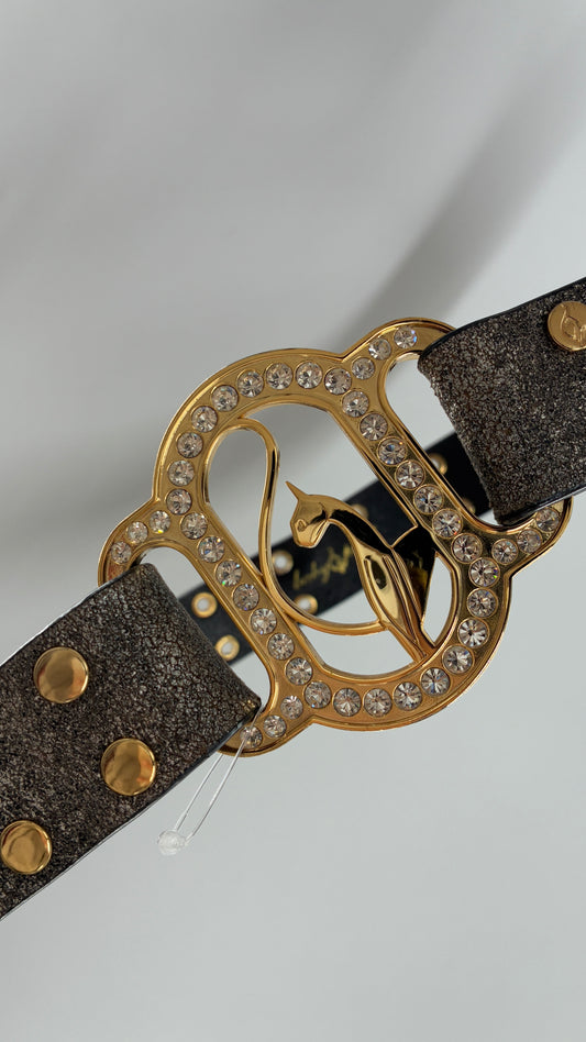 Vintage BABY PHAT Grey Belt with Iconic Gold Logo Buckle (Large)