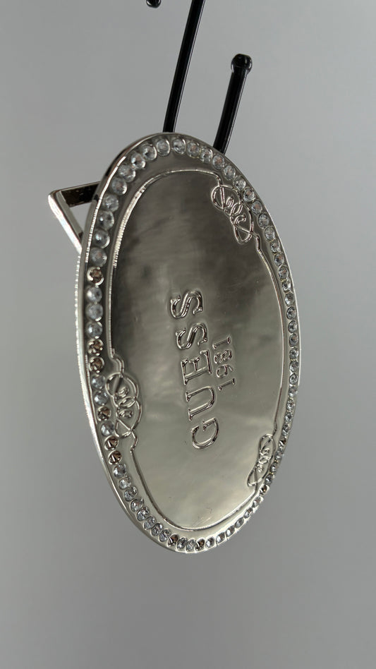 GUESS 1981 Oversized Silver Metal Buckle with Rhinestones