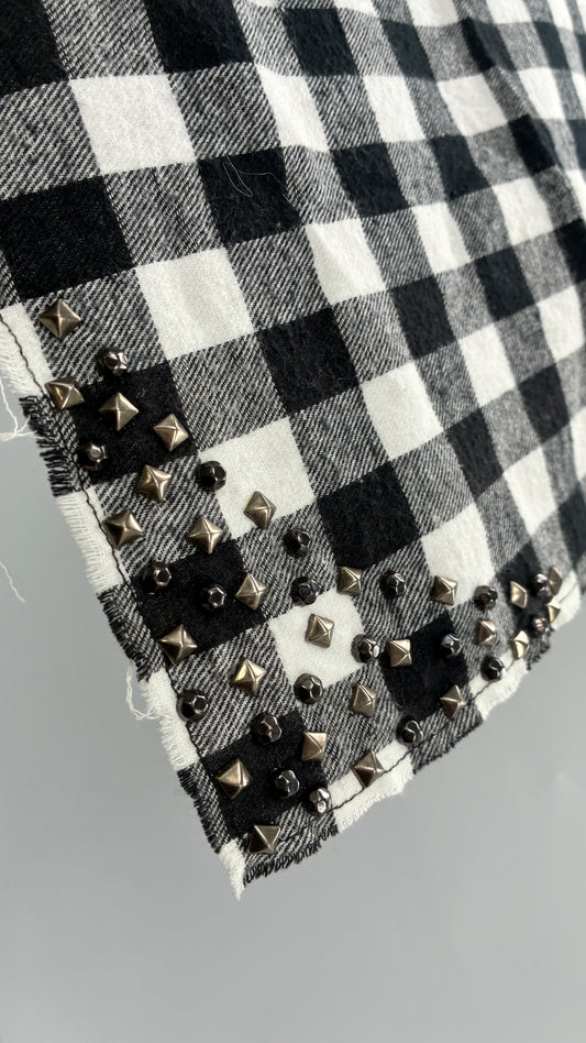 Free People Plaid, Studded, Black and White Bandana Head Scarf
