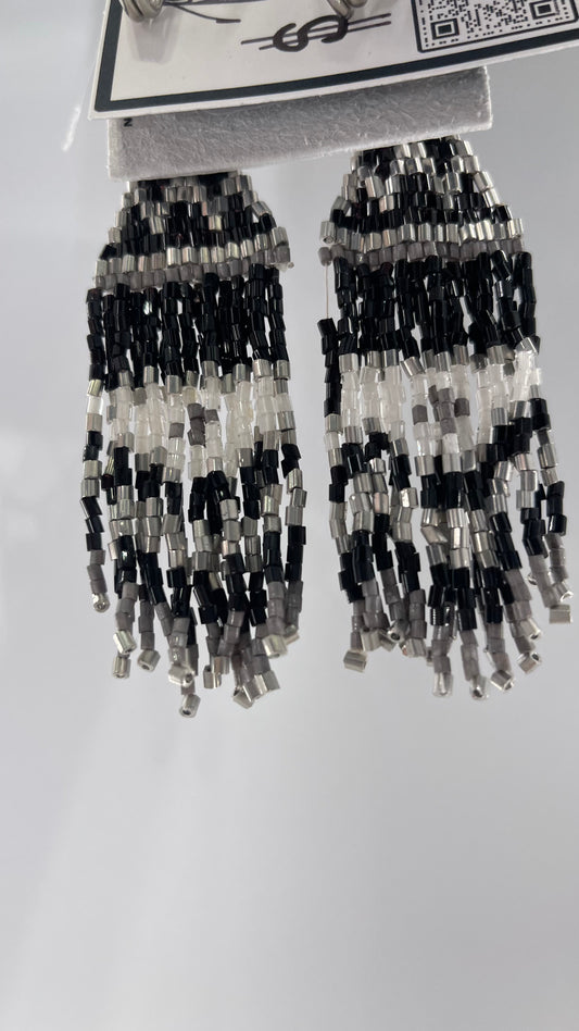 Free People Beaded Bohemian Black White Silver Earring with Tags Attached